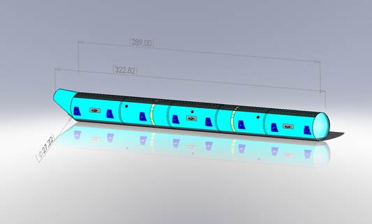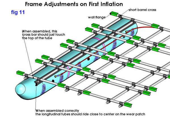 First is the style of pontoon being considered. The length of the frame being considered is 22 ft (264 inches)Between the cones on this unit is 263.7 inches, This is an economic length because It is built with 4 ½ sections of inflatable fabric. 5 sections would be 289 inches.